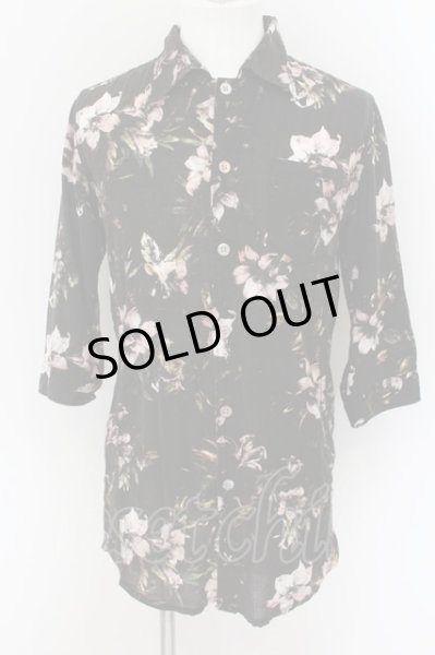 TORNADO MART / シャドーフラワープリント六分袖ロングシャツ L ブラック O-24-09-15-039-TO-sh-YM-OS