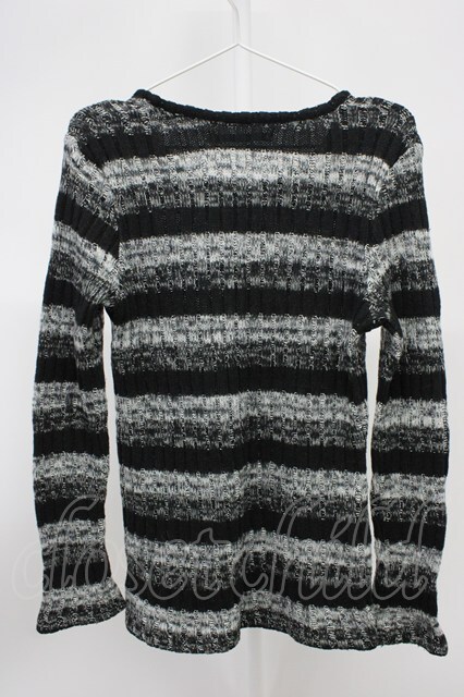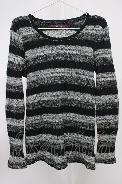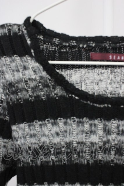 SEANA / ケーブル編みボーダーニットソー L ブラックxグレー T-25-11-20-004-SE-to-YM-ZT [2100080000058289-T-25-11-20-004-SE-to-YM-ZT]