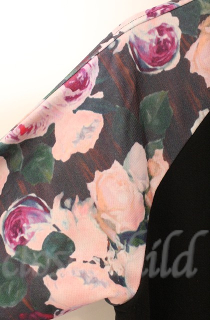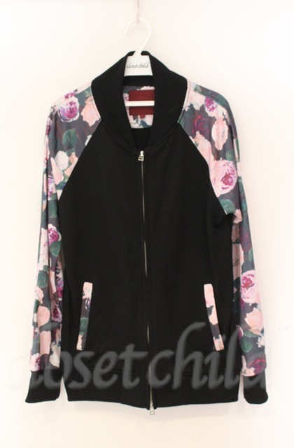 SEANA / 花柄切り替えコットンスタジャン L ブラックxピンク T-25-12-13-034-SE-to-YM-ZT1213N