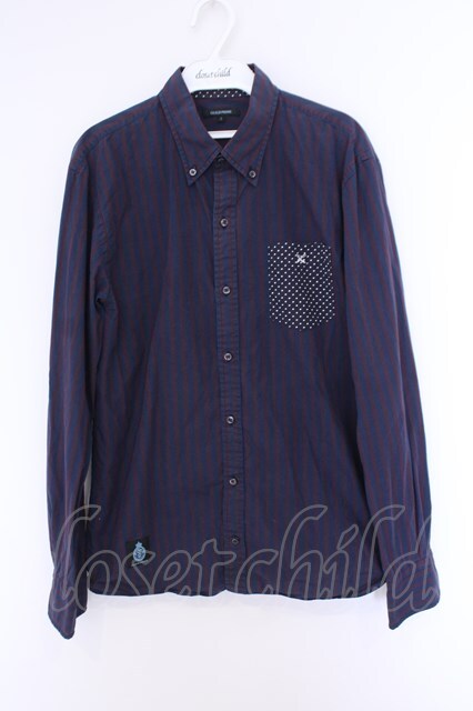 GUILD PRIME / ポケット付きストライプボタンダウンシャツ 3 ネイビーxパープル O-26-02-03-023-GU-sh-YM-OS [2100080000074055-O-26-02-03-023-GU-sh-YM-OS]