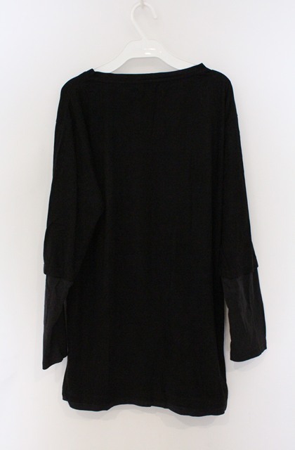 SEANA / フェイクスウェードUネックカットソー L ブラック O-26-02-22-040-SE-to-YM-OS