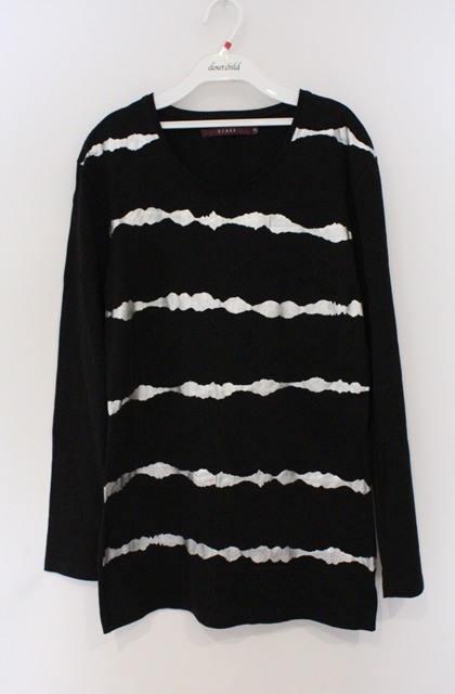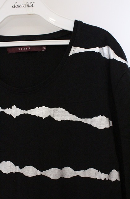 SEANA / 箔ボーダーカットソー XL ブラック O-26-02-22-032-SE-to-YM-OS
