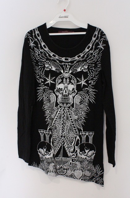 SEANA / スカルプリントアシンメトリーロングカットソー L ブラック O-26-02-22-025-SE-to-YM-OS