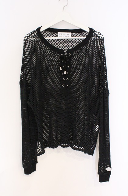 el conductorH / COTTON LACEUP LONG SLEEVE MESH トップ 2 ブラック O-26-02-23-010-el-to-YM-OS