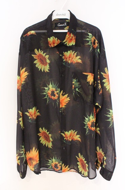 CavariA / 向日葵総柄シフォンシャツ 46 ブラックxイエロー O-26-02-23-012-Ca-sh-YM-OS