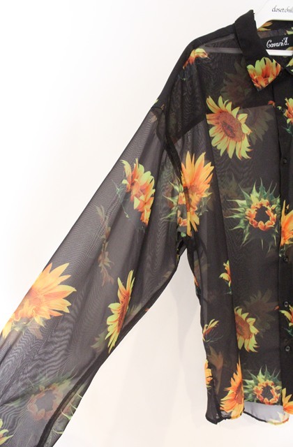 CavariA / 向日葵総柄シフォンシャツ 46 ブラックxイエロー O-26-02-23-012-Ca-sh-YM-OS [2100080000075510-O-26-02-23-012-Ca-sh-YM-OS]