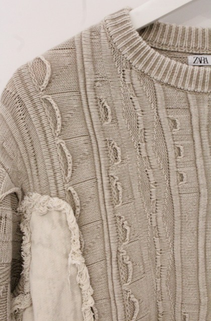 ZARA / オーバーリペアケーブル編みクルーネックプルオーバー EU M ライトベージュ O-26-04-20-018-ZA-to-YM-OS [2100080000081191-O-26-04-20-018-ZA-to-YM-OS]